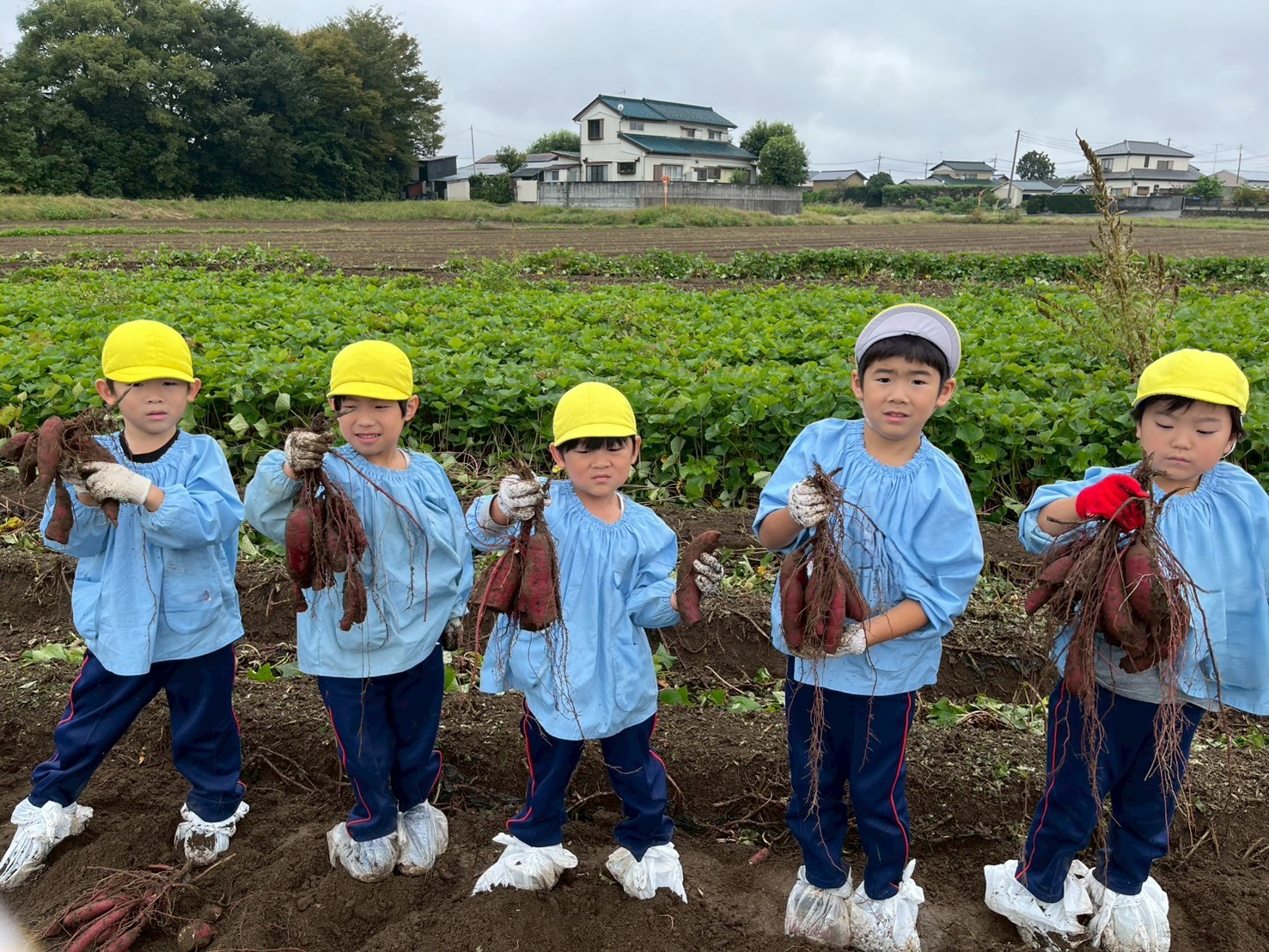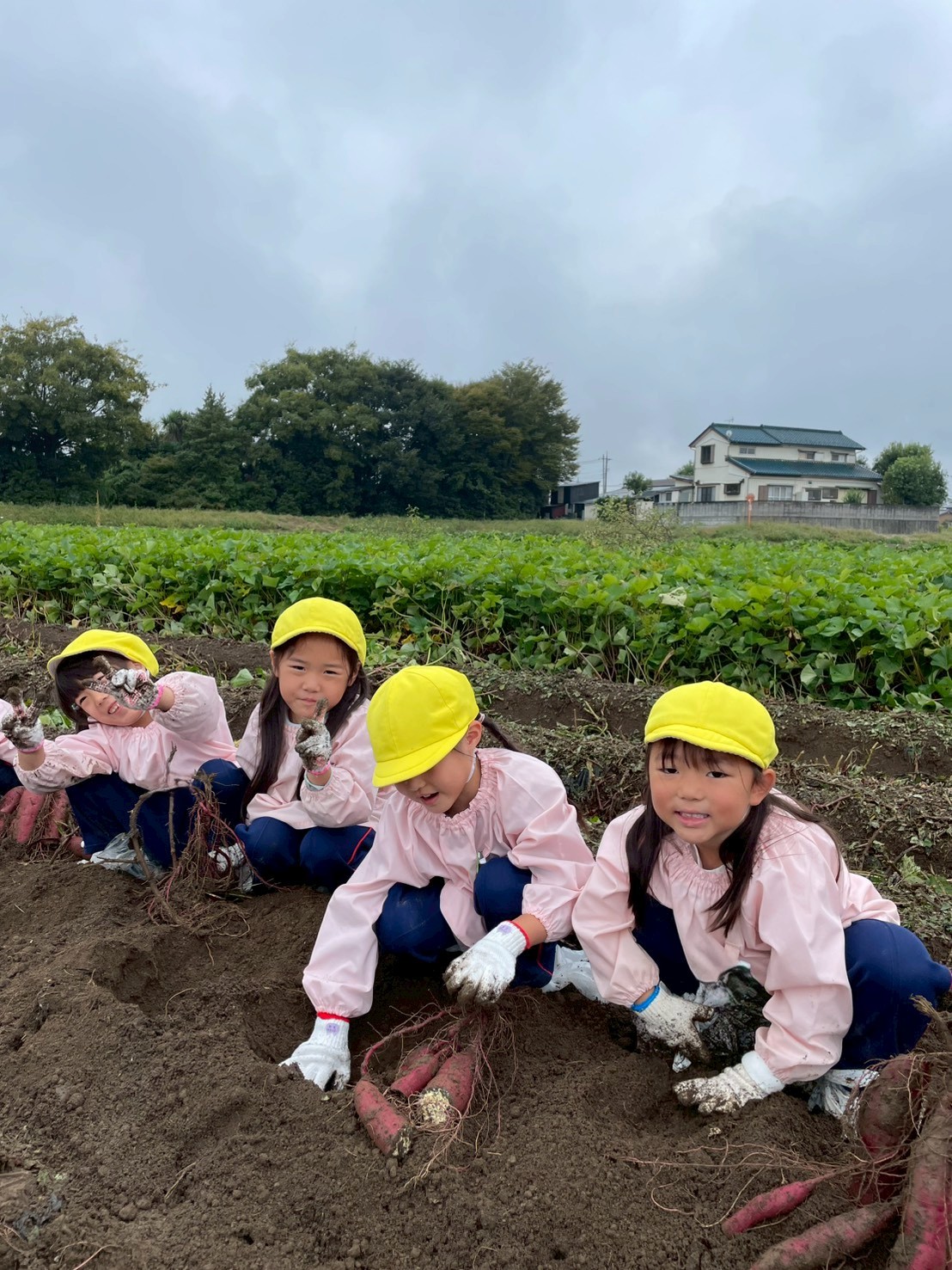 今日はおいもほりに行きました!バスの中では、「大きいのを取るぞ~!」とやる気満々な様子でした。おいもほりの時間には雨も上がり、一生懸命おいもを掘ることができました!たくさん取れて満足そうなお友だちでした。