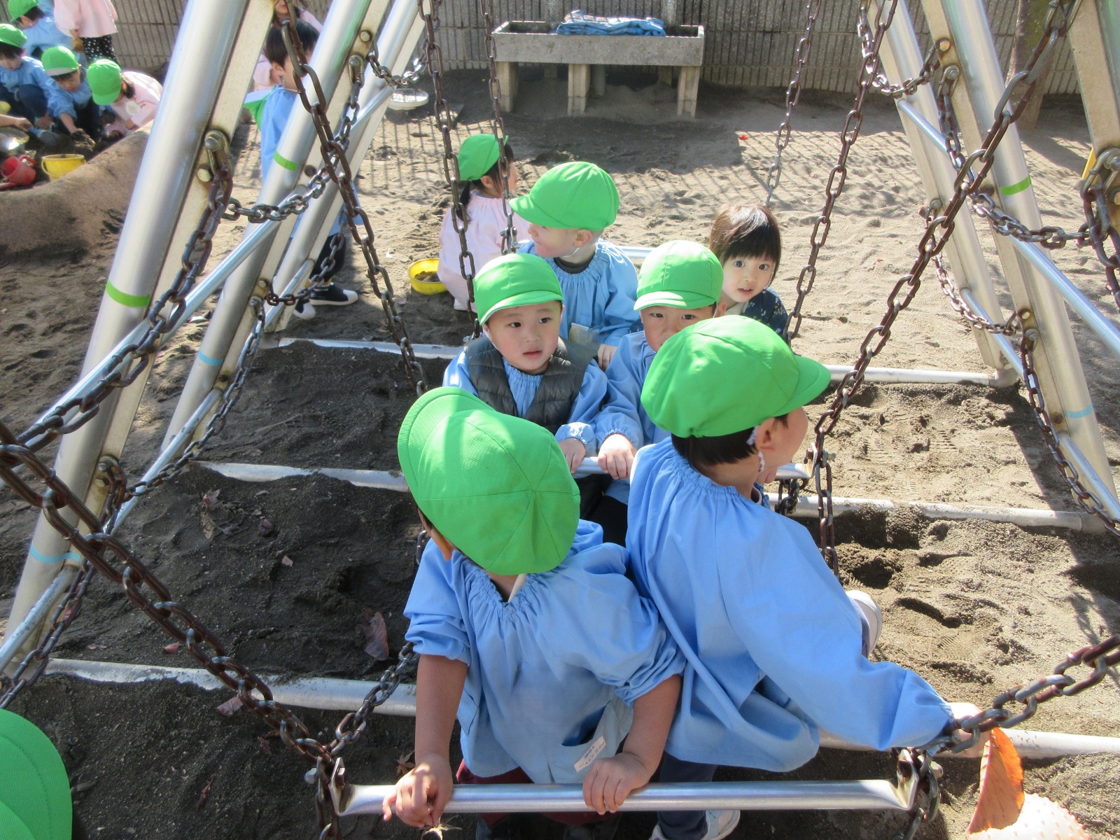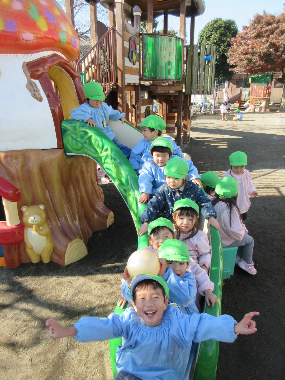 今日はお天気が良く、お外でたくさん遊びました!仲良しな様子がとても微笑ましいですね。