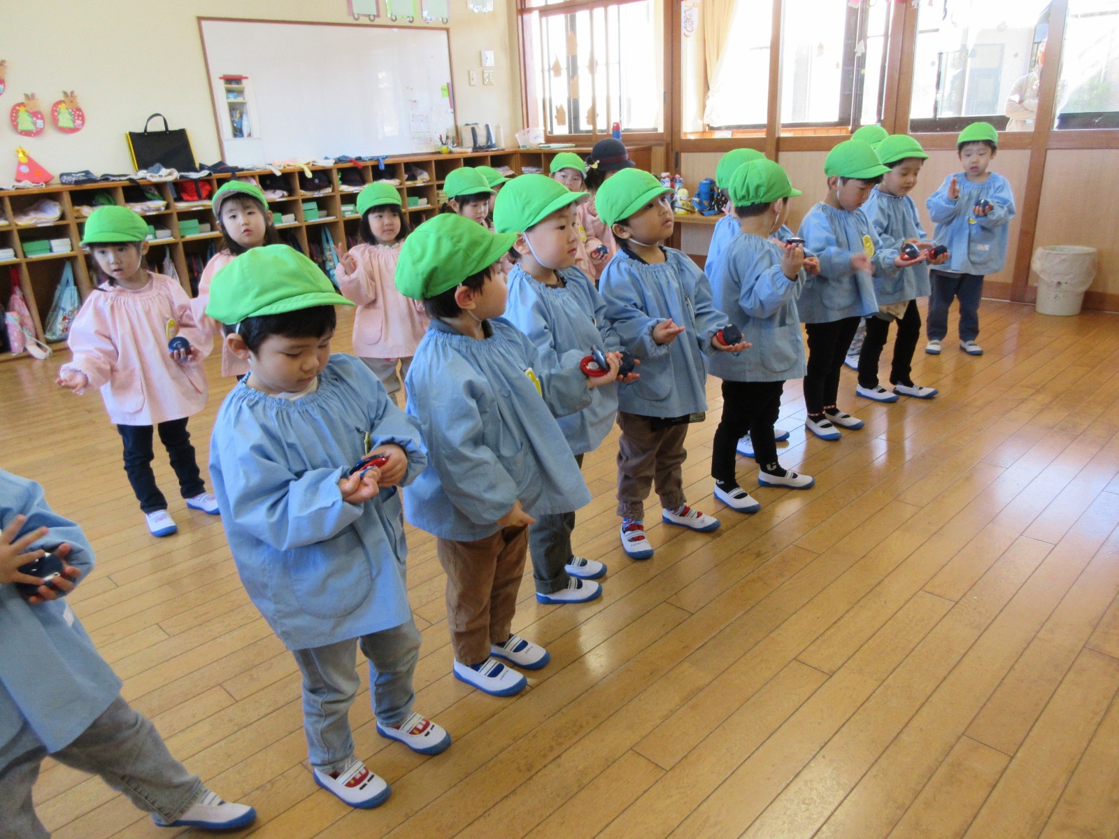 今日は総和園に遊びに行きました!お部屋では、朝の会とカスタネットを使ったリズム遊びをしました。その後、園内探検をし、「広いね!」と楽しくお話をしながら歩きました。