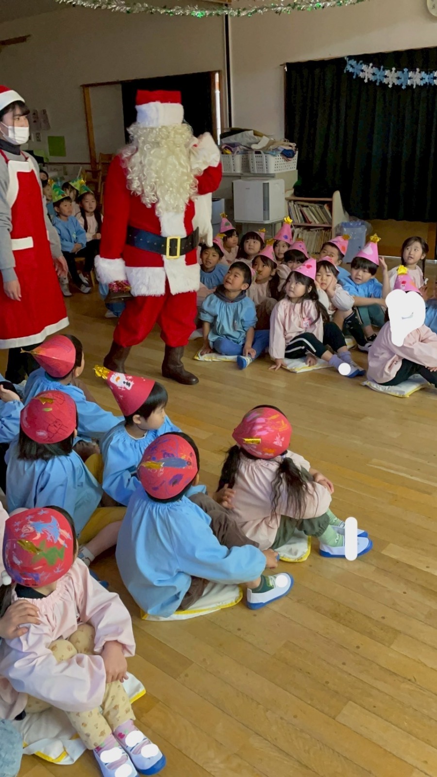 クリスマス帽子を被ってウキウキなお友だち。