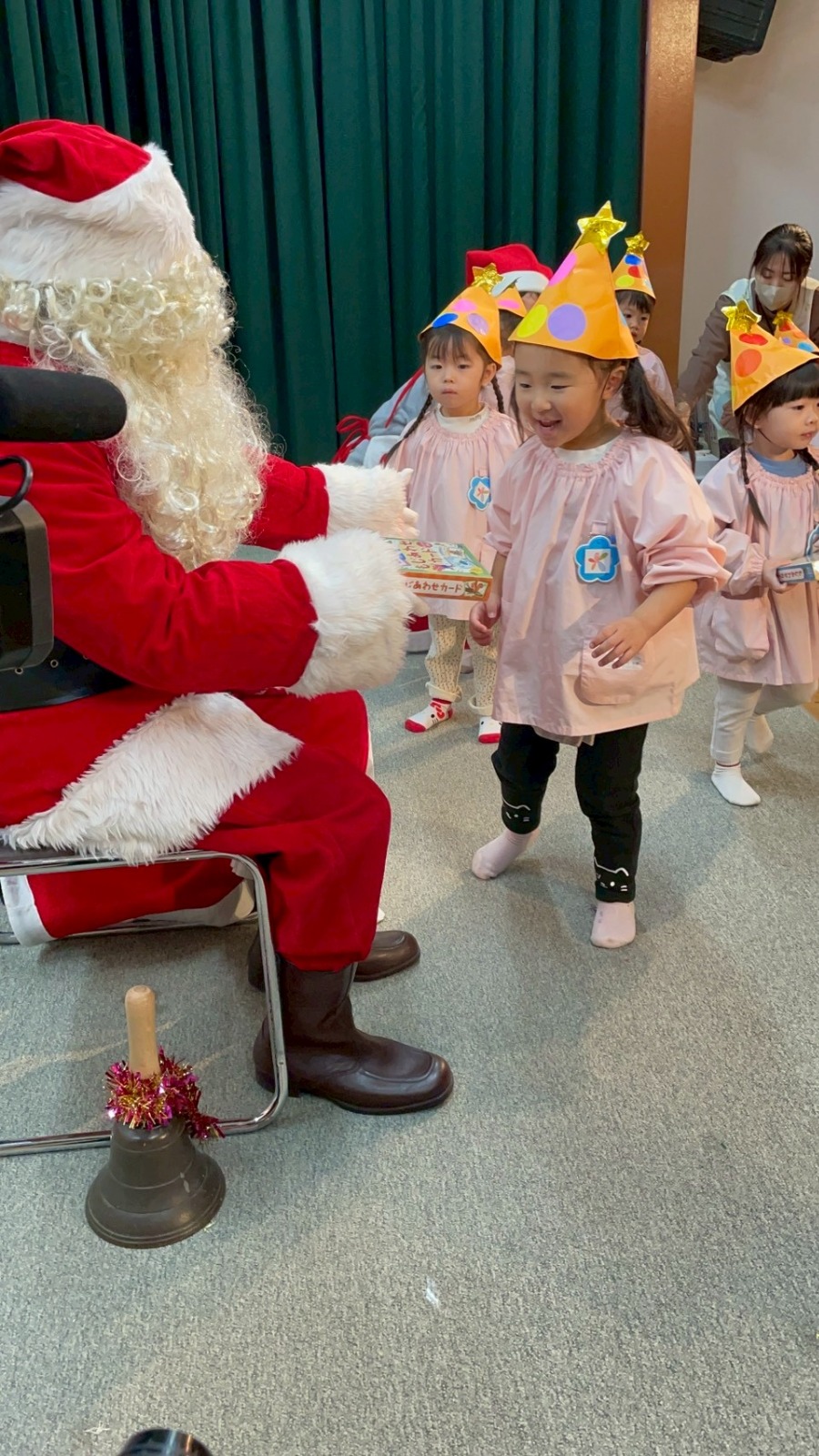 サンタさんが登場すると、目をキラキラと輝かせたくさん手を振る姿がありました。