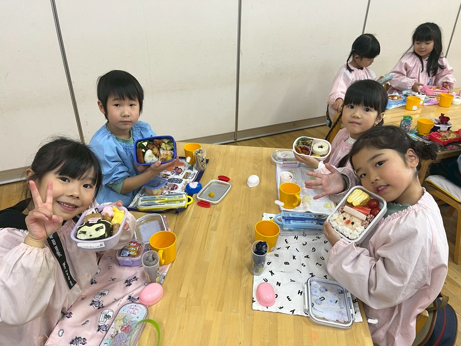 また、今日の昼食はお弁当でした。「おいしいね!」と笑顔で食べる姿が見られていました!