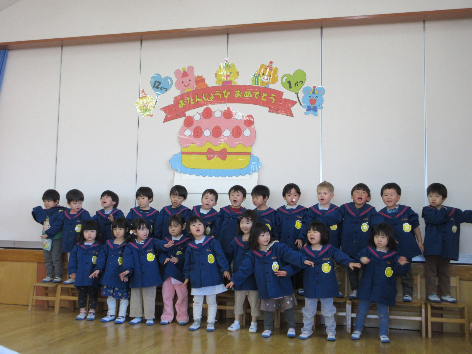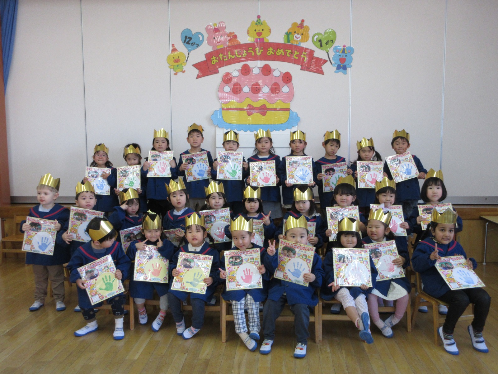 12月・1月生まれのお誕生会でした!今回はひよこ組のお友だちが「ドレミの歌」を歌ってお祝いをしてくれました。とても嬉しそうでした♪