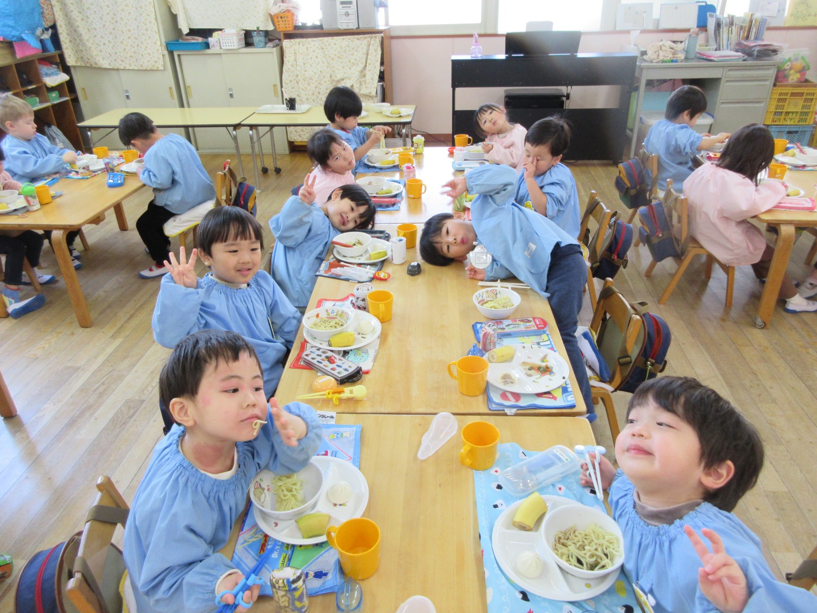 今日の給食は、ひよこ組のリクエストメニューでした。☆献立☆・醬油ラーメン・肉まん・バナナ「ラーメン大好き♡」「美味しい!」「全部たべられたよ♪」と嬉しそうにしていました!
