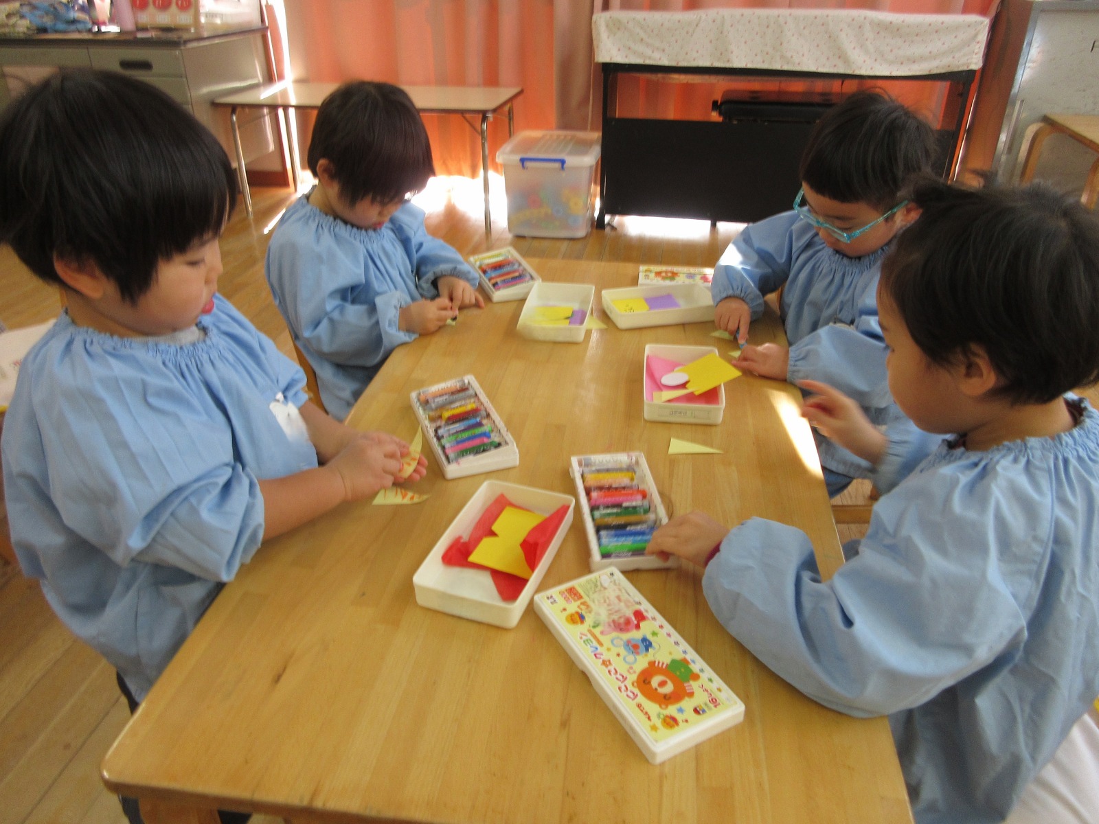 2月に向けて、鬼の製作を行いました。鬼の角の模様を描いたりお花紙で髪の毛を作ったりと、カラフルで素敵な鬼が出来上がりました!
