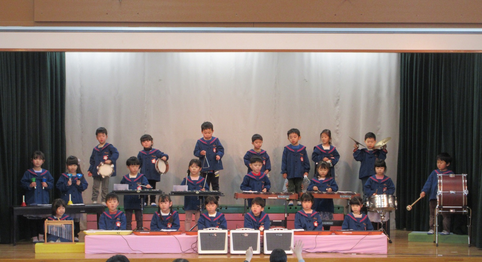 年中組で保育参観を行いました。お部屋ではピアニカの練習をしている姿を見ていただき、舞台ではピアニカと合奏の発表を行いました。この日のために一生懸命練習していたお友だち。堂々と発表することができました!
