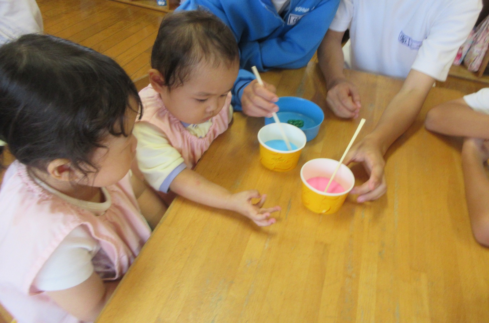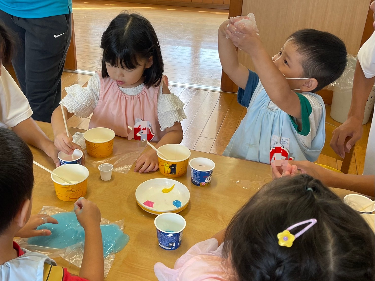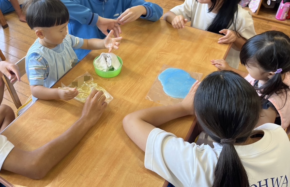 お兄さん、お姉さんたちとは、スライム作りをしたりブロック遊びやおままごとなどをして楽しい時間を過ごすことができました。