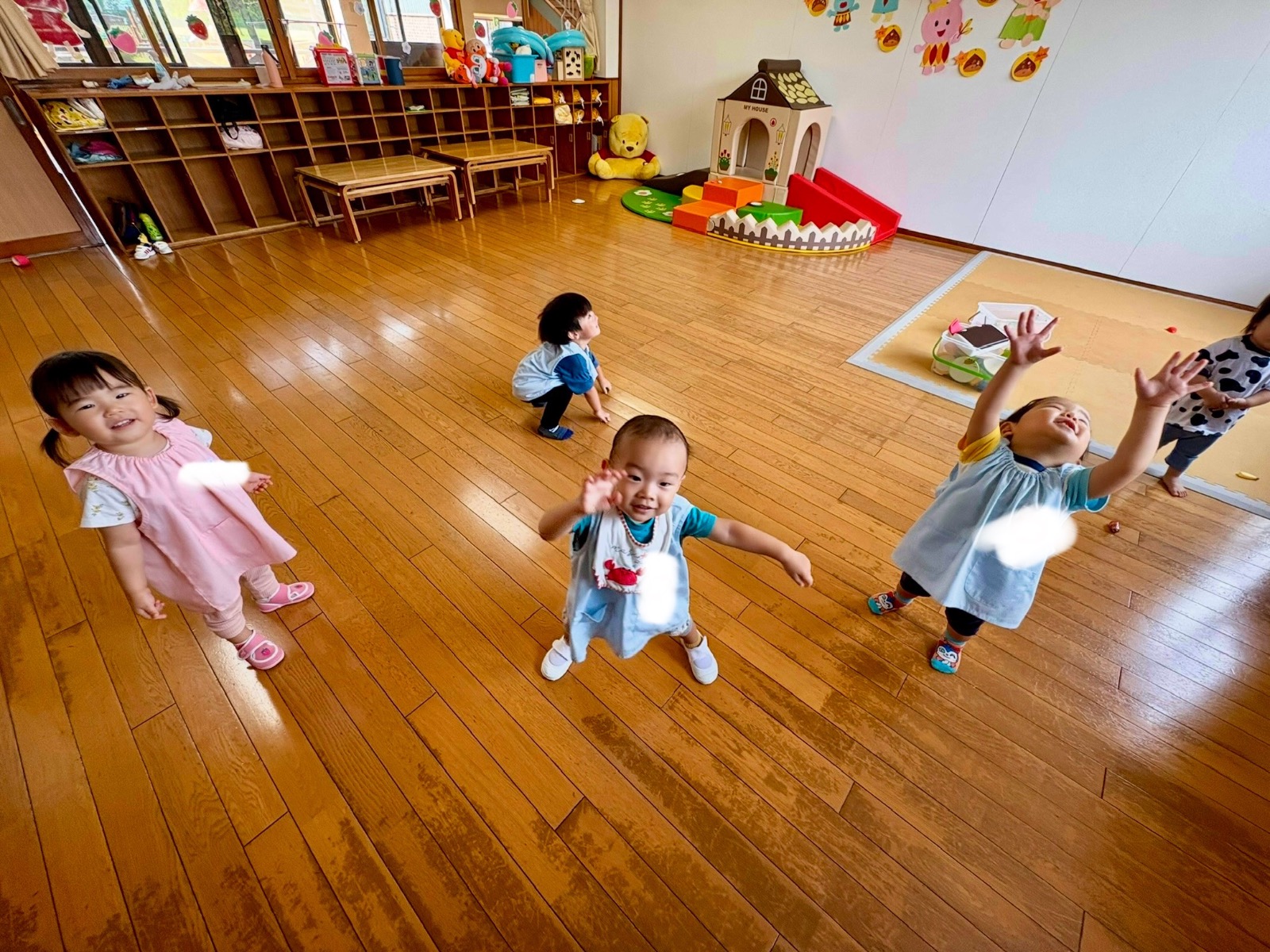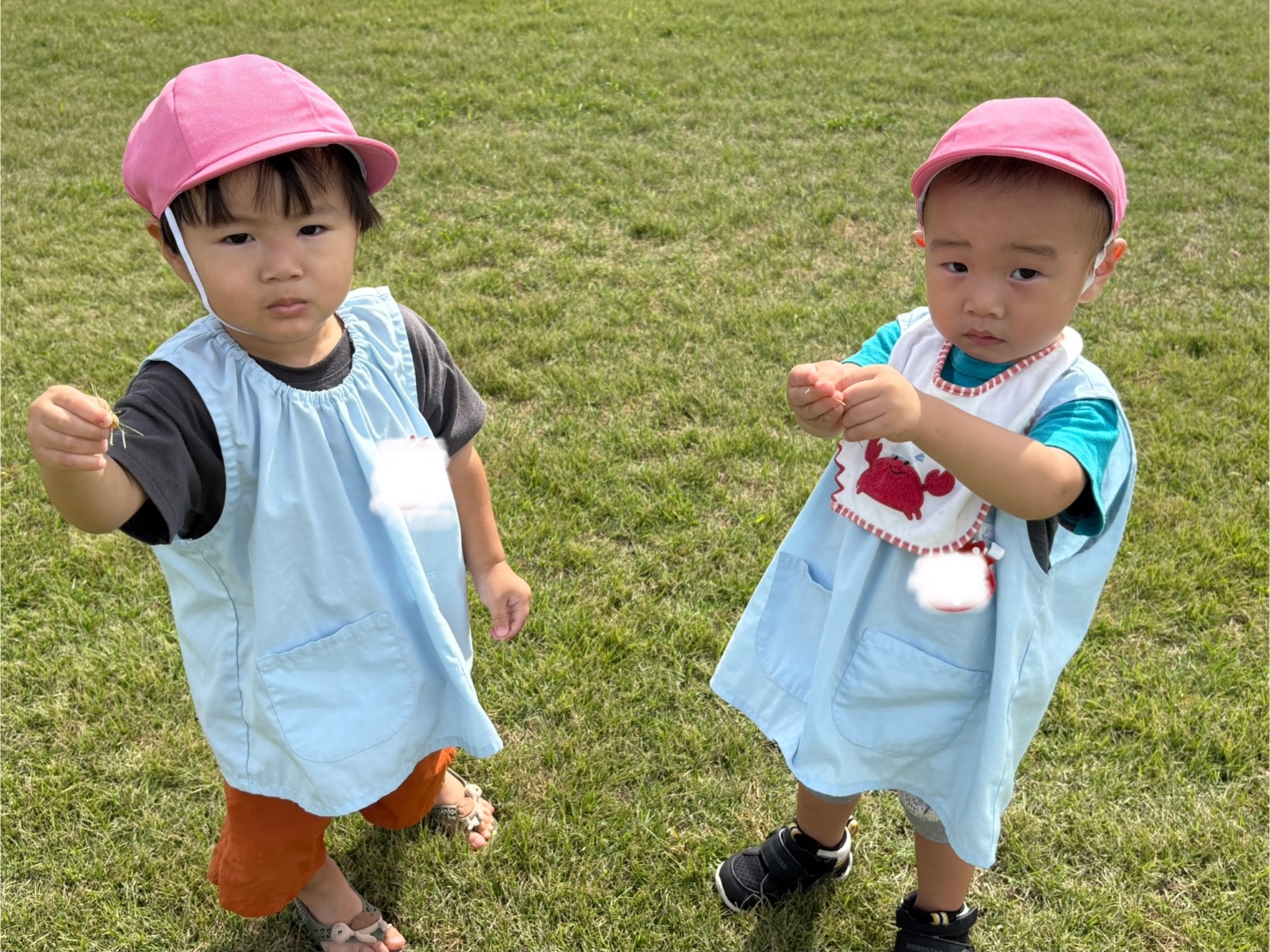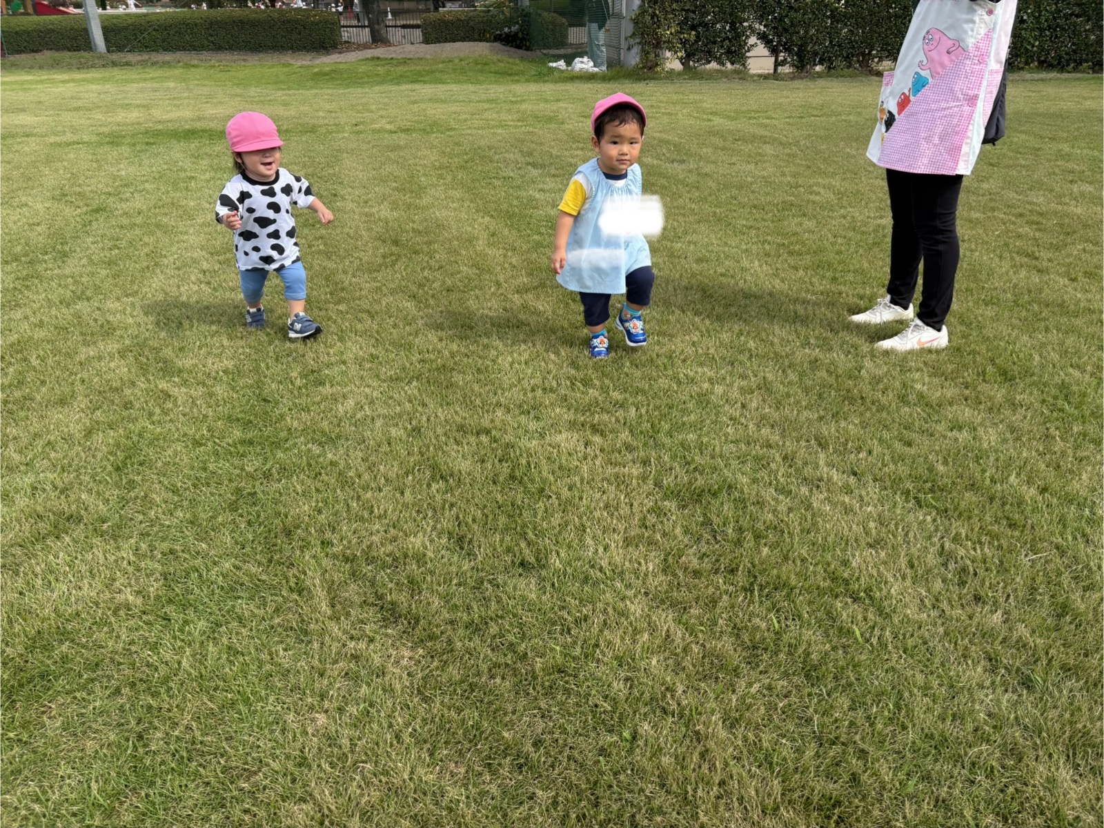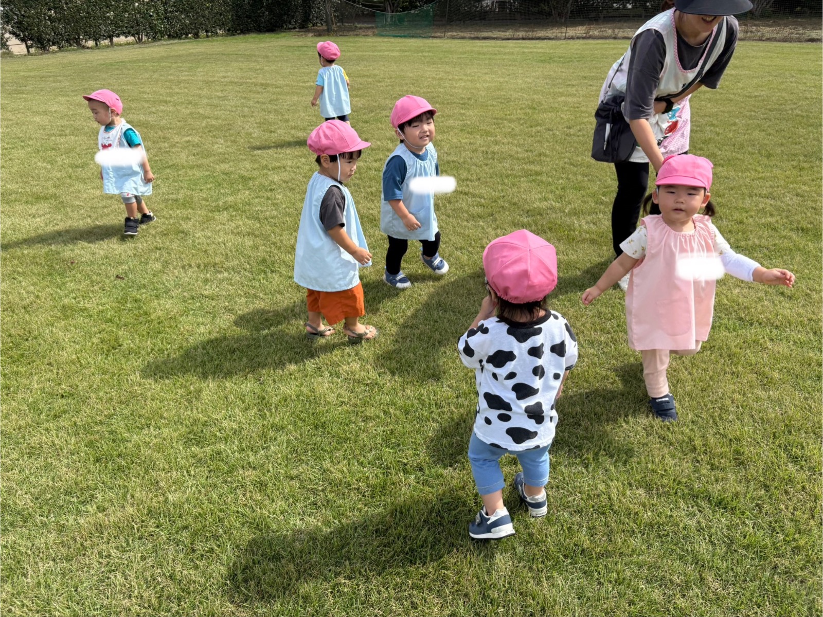 今日は、朝みんなでアンパンマン体操を踊りました♪ その後、初めて自由広場までお散歩に行き、お兄さん、お姉さん達のカッコいい姿を見た後は、広い芝生の上を沢山走り回ったね!明日はみんなで何をしようかな♫