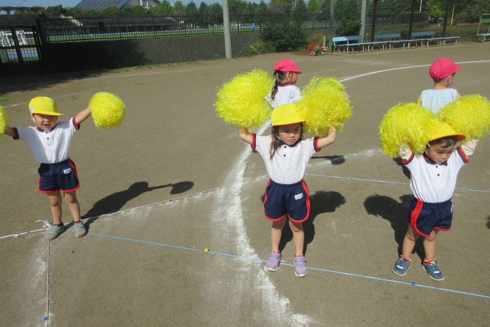 今日は、年少組での運動会の練習の様子をご紹介します!「お家でも練習したー!」とやる気いっぱいのお友だちです!ポンポンを持って可愛らしく踊っています♪本番が楽しみですね!