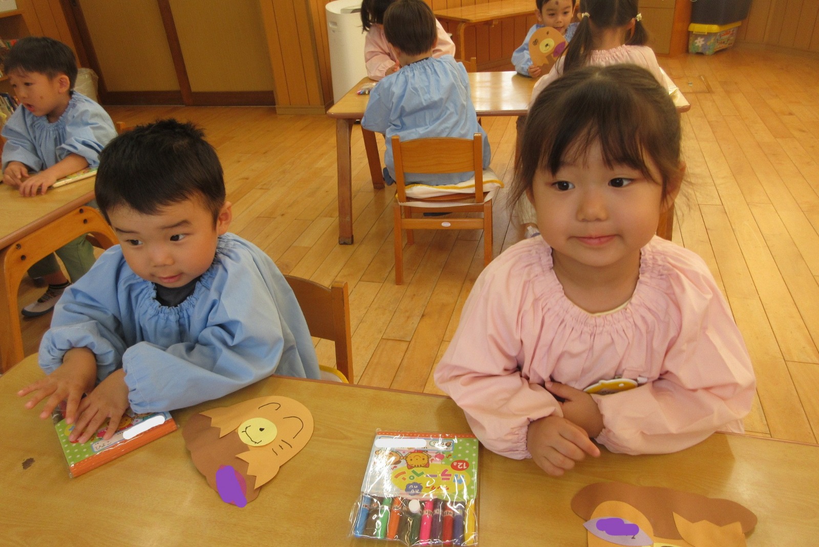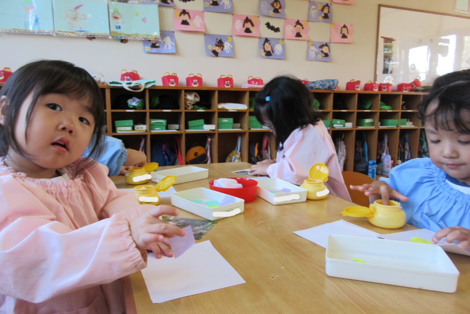 今日は年少組のお友だちでクラス製作を行いました!秋らしい可愛い作品が出来上がりました!お部屋に飾られるのが楽しみですね♪来週も元気に過ごしていきましょうね!