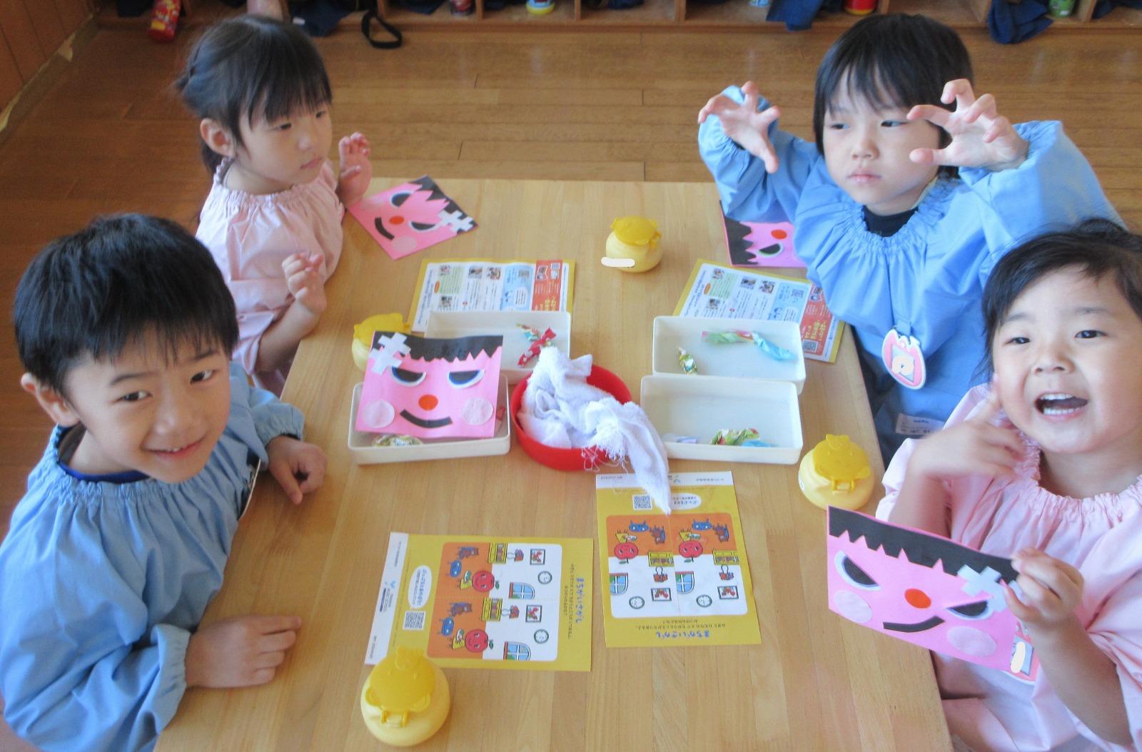 今日はハロウィンバックの製作をしました!目や口を好きなように貼り、個性豊かなフランケンのバックが完成しました!当日、バックの中にキャンディーを入れて幼稚園を回るのが楽しみですね♪他にも、クラスごとでステッキも製作中です!どんなステッキが出来上がるのかな?