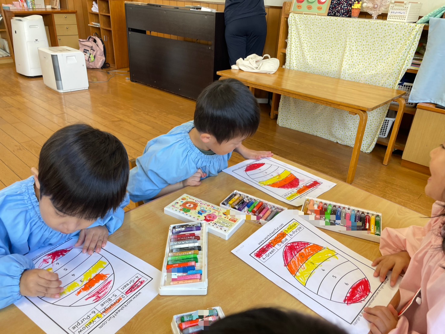 今日は、ユリア先生と一緒に英語のプリントを行いました!