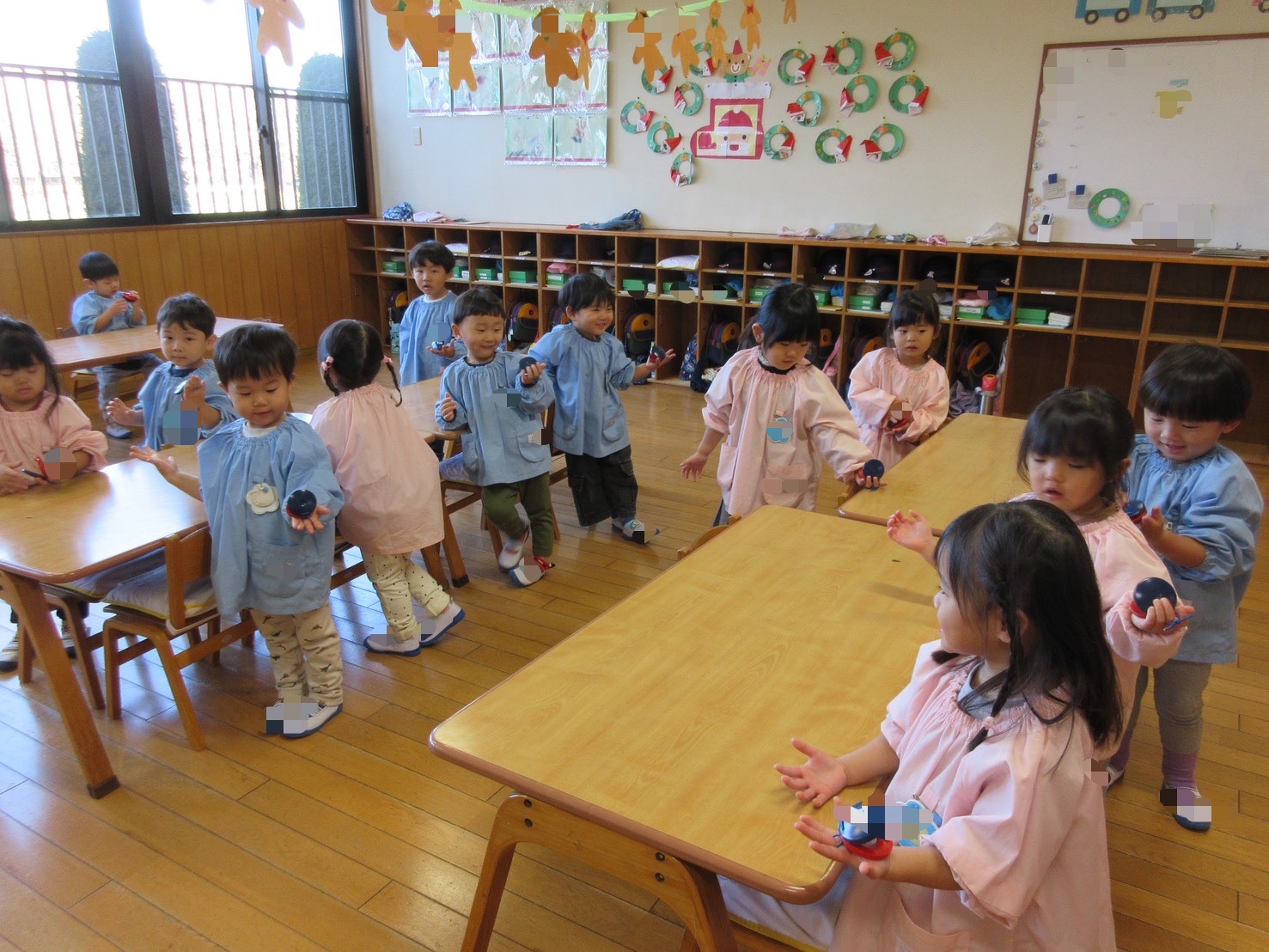 今日は朝の会で初めてのカスタネットを使いました!みんな「すごい!」と楽しく叩くことが出来ました♪