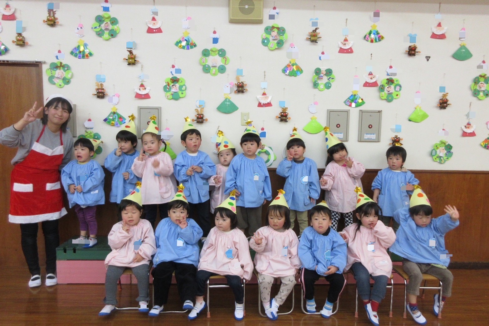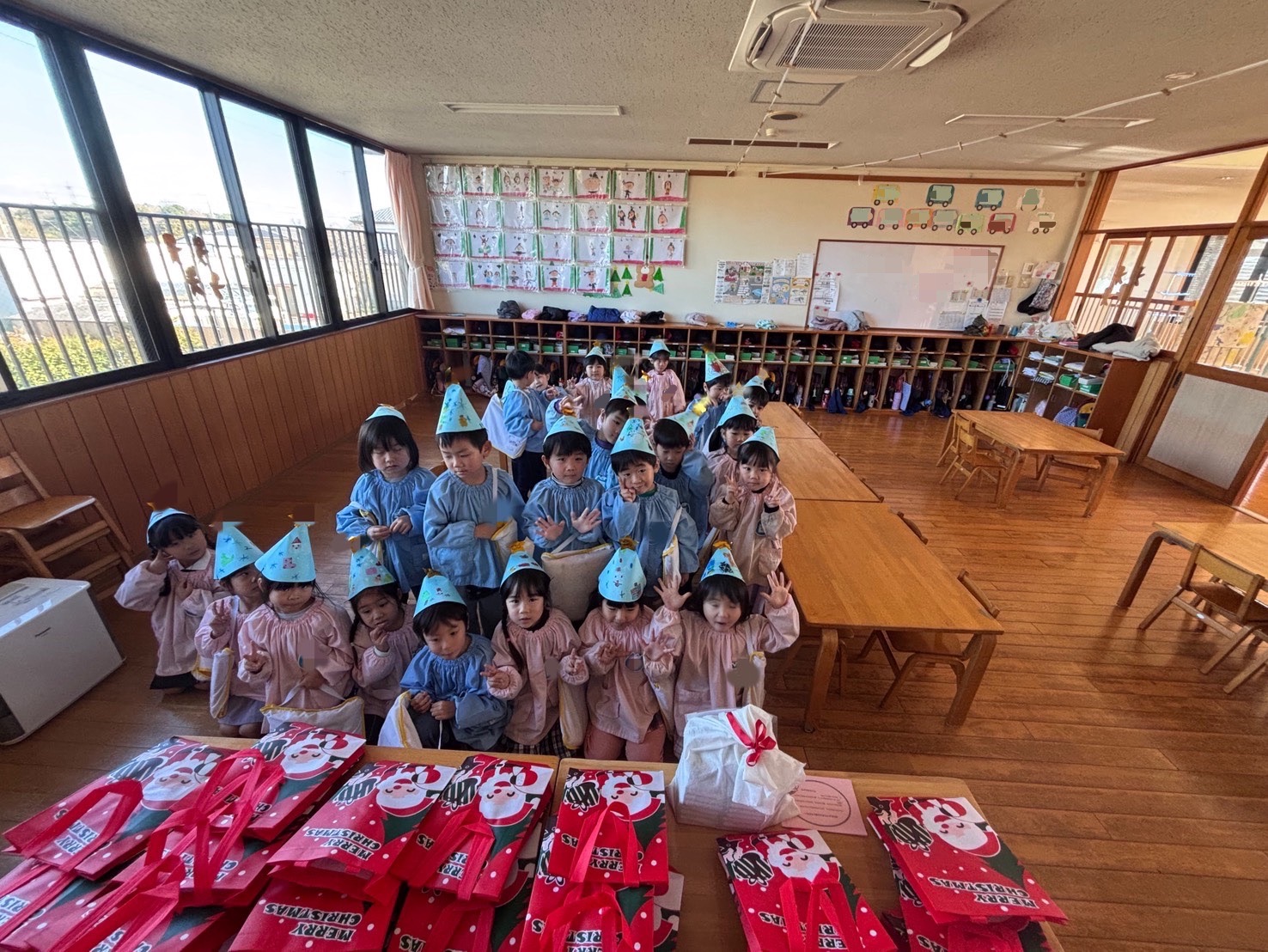 今日はクリスマス会がありました。お友だちがかわいく作った帽子を被って参加しました。サンタさんに質問をしたり、プレゼントを貰えたりと大喜び!!お家の人やお友だちと楽しく仲良く使っていきましょうね♪