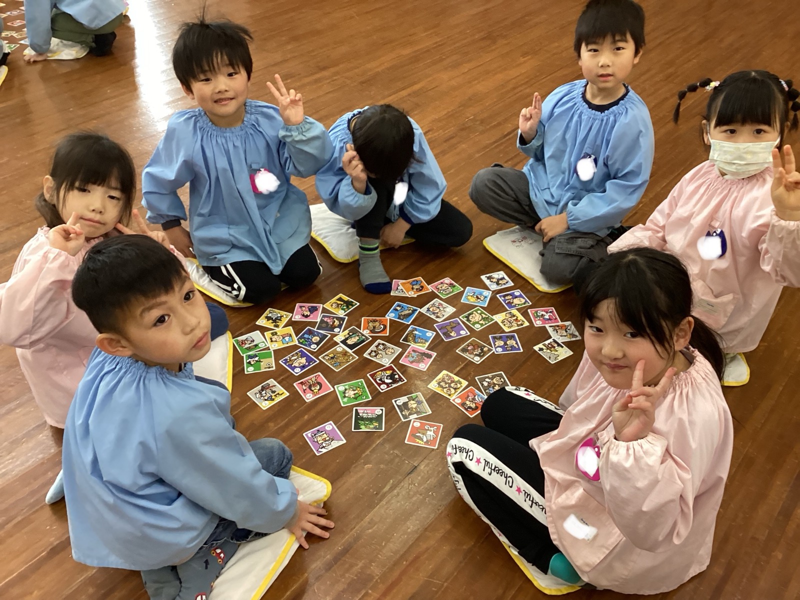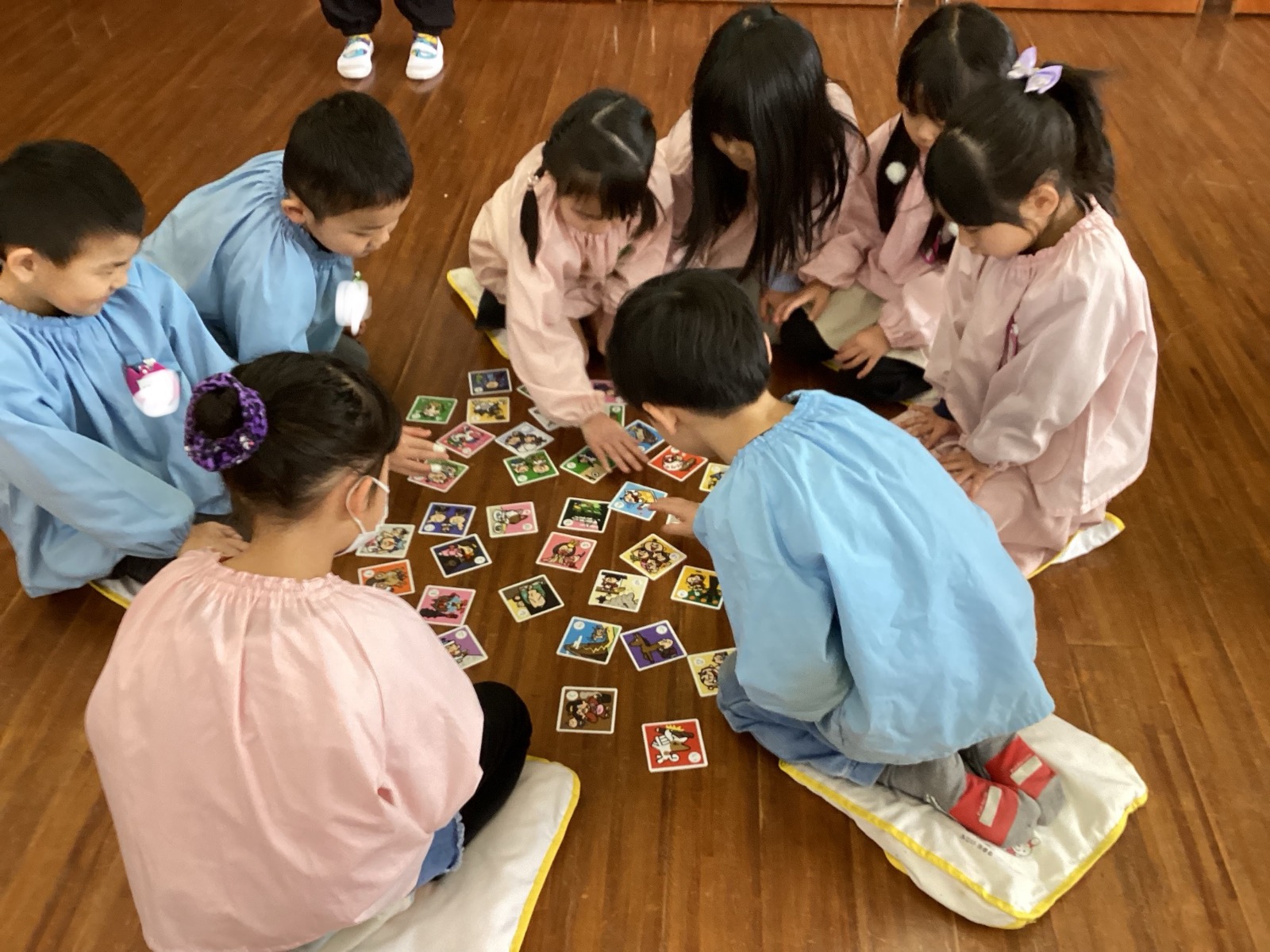 今日は年長組でかるた大会を行いました!「メダルゲットしたい!」と気合満々で取り組むお友だちの姿がみられましたよ。最後まで集中し、よく頑張りました!またお部屋でも楽しみましょうね☆
