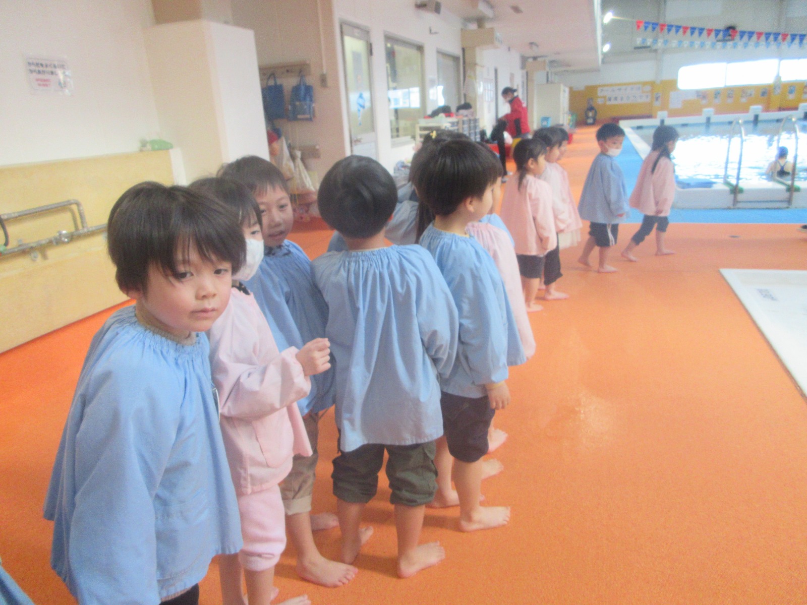 今日は、年中組でスイミングの見学に行きました。