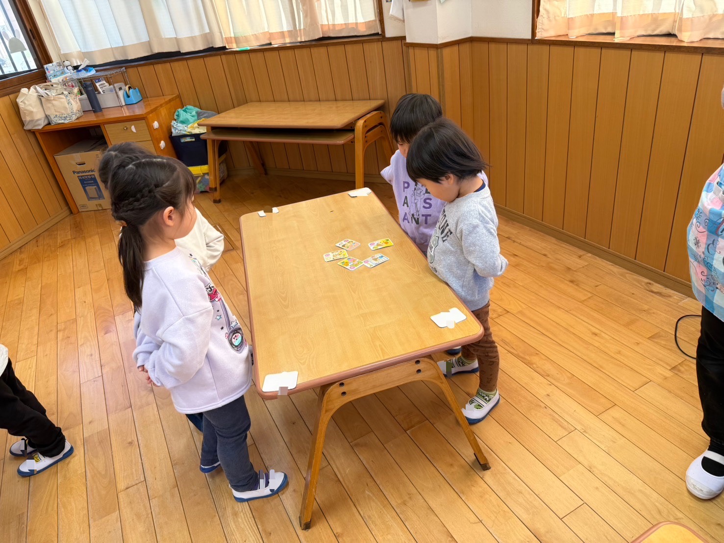 年少組ではサンタさんからのプレゼントのカルタで楽しく遊んでいます!