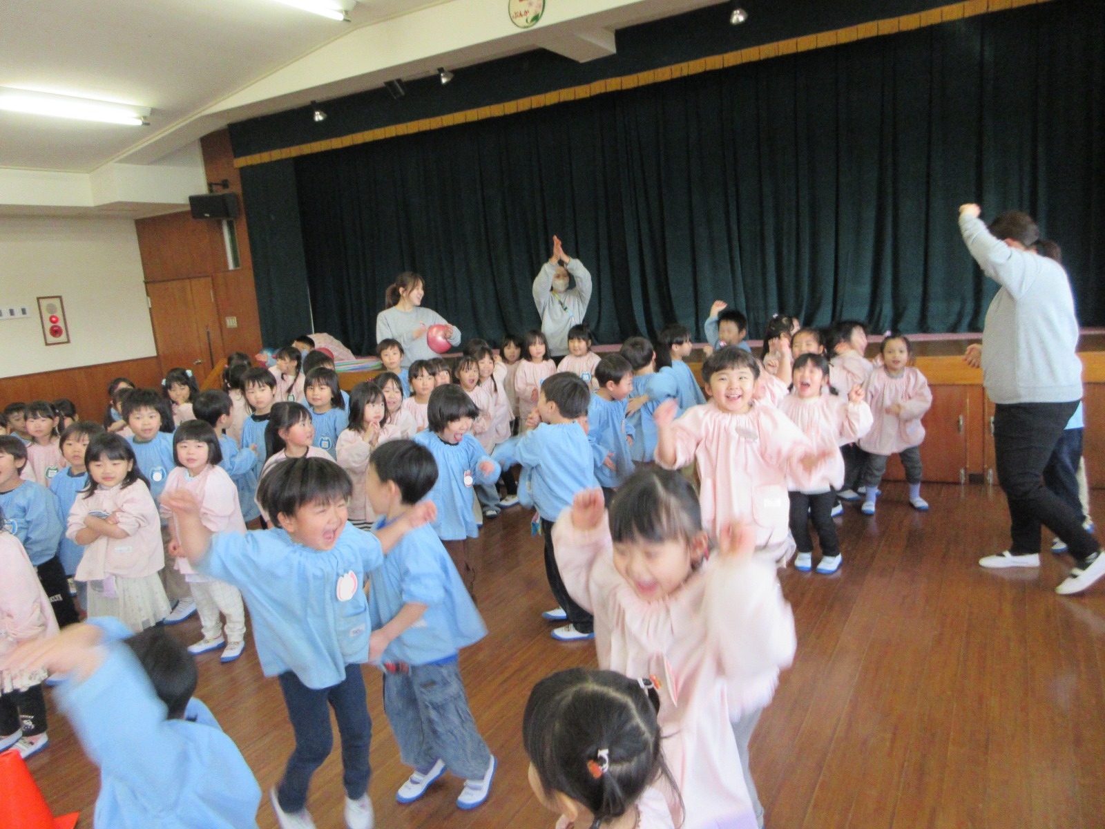 今日は年中組でレクリエーションを行いました!ボール運びリレーや宝集めゲーム、先生クイズと盛りだくさん!!どのゲームもお友だちと協力して元気いっぱい参加し、楽しむ姿が見られました♪