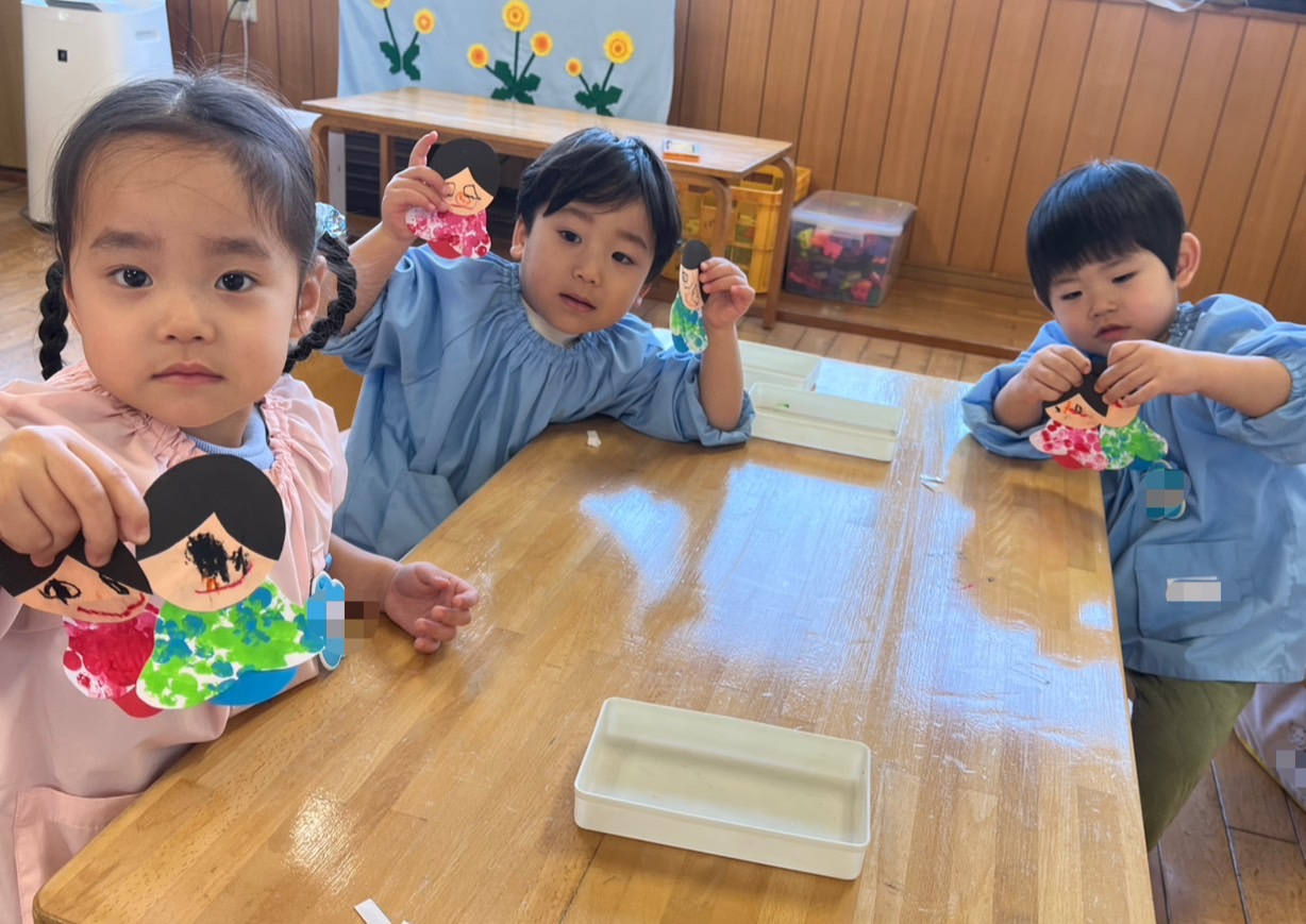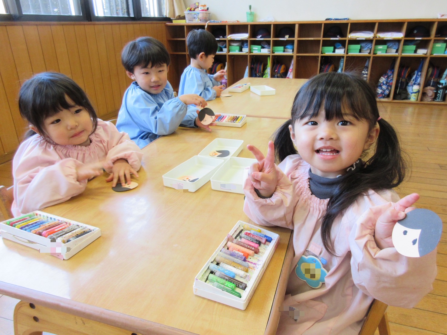 今日は、ひな祭りに向けて製作を行いました♪ぷちぷちで着物をスタンプしたり、クレヨンでお顔も描きました!できたよ!と上手にかけたお顔を見せてくれました!完成が楽しみですね