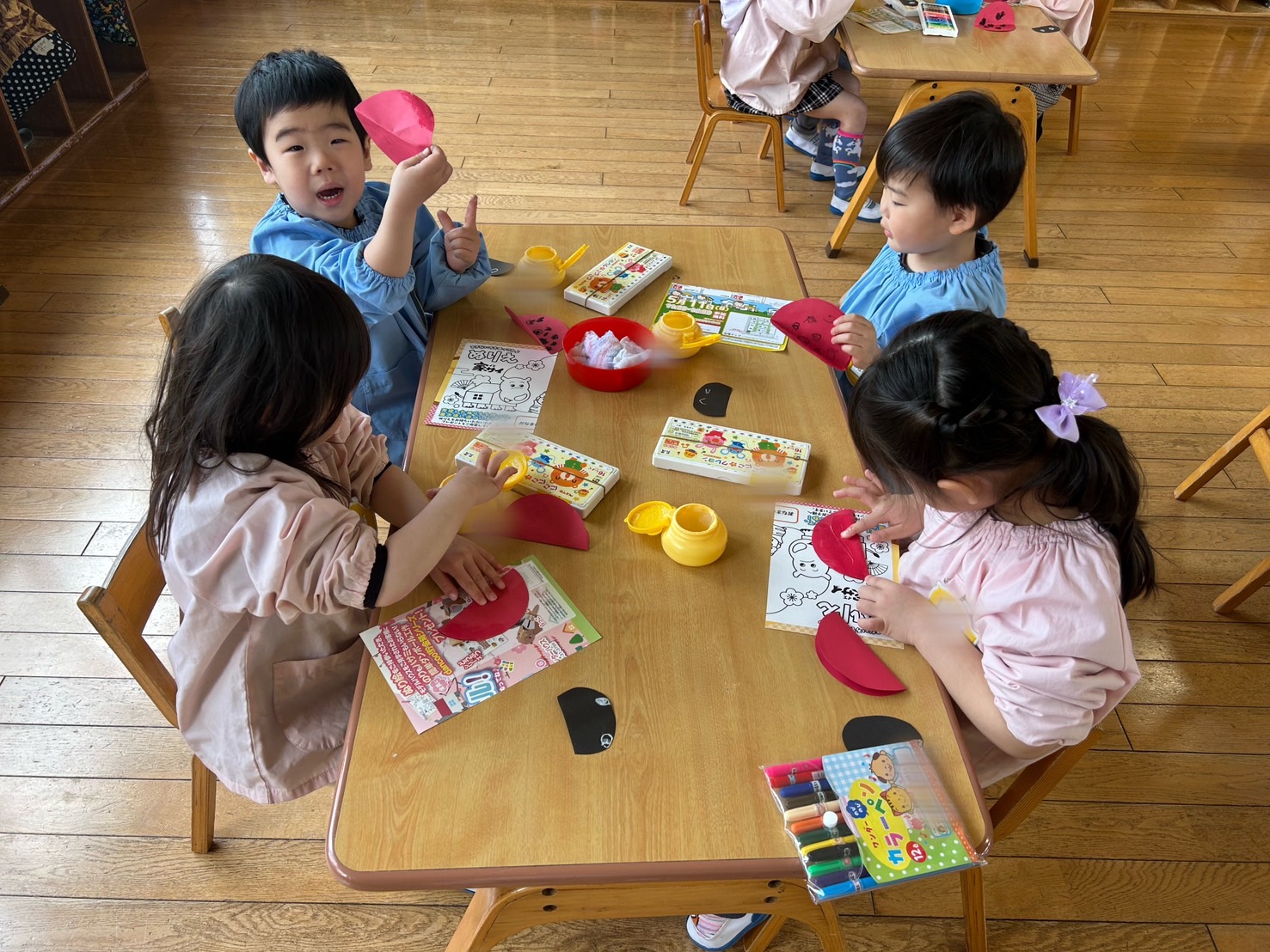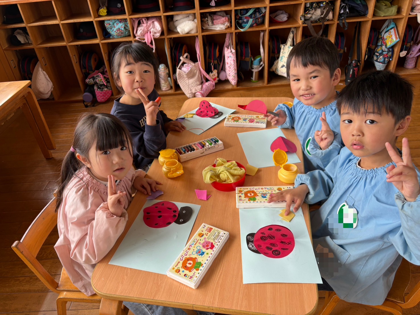 今日の預かり保育では「てんとうむし」の製作をしました!てんとう虫の模様や周りにお花、ちょうちょを描いたりと春を感じる素敵な作品を作ることができました♫お外へ行き、てんとう虫を探したりと元気いっぱいに遊ぶ姿が見られましたよ!小さかったチューリップもだんだんと咲き始めてきましたね☆
