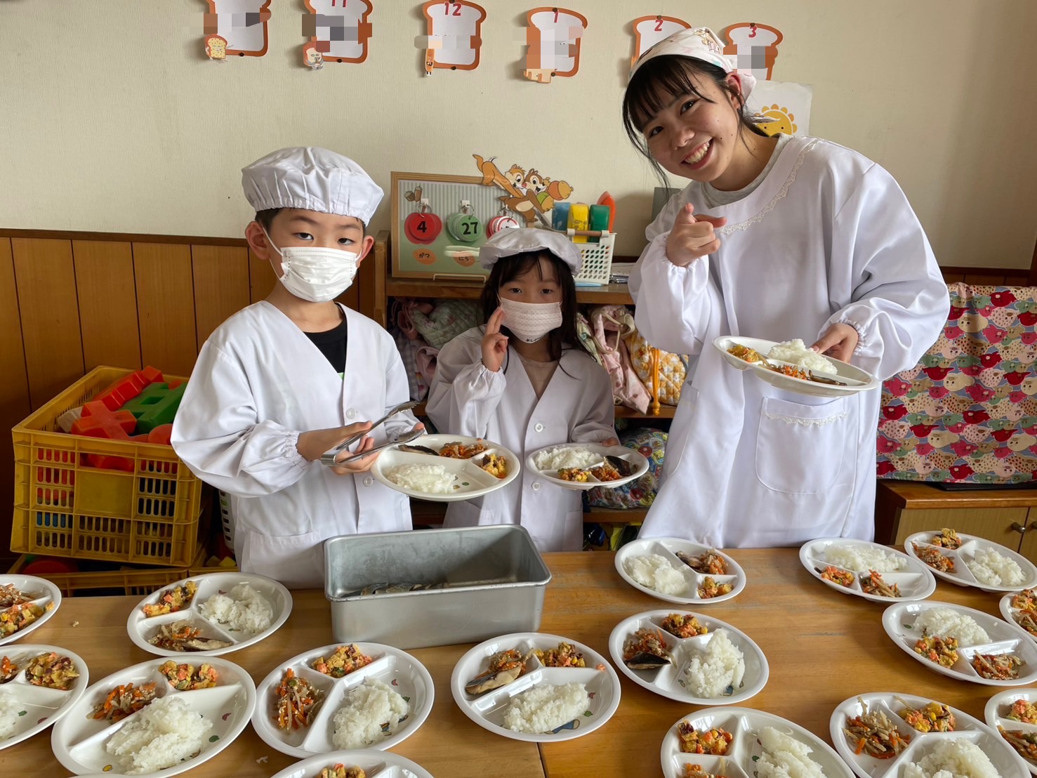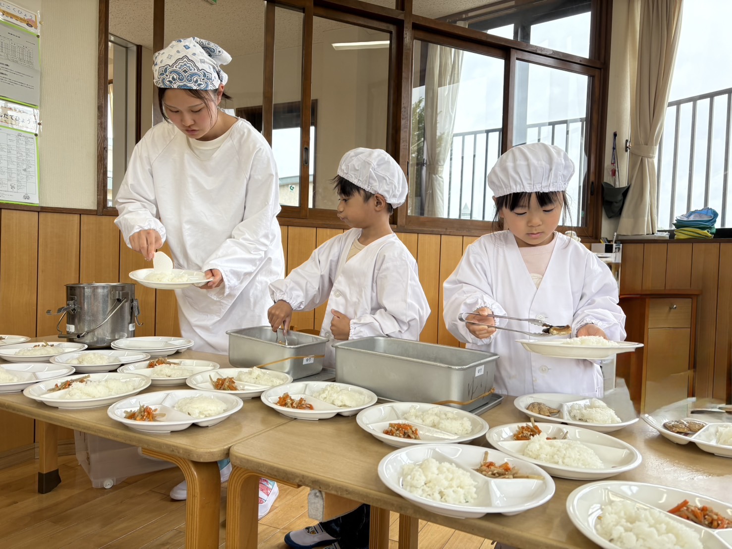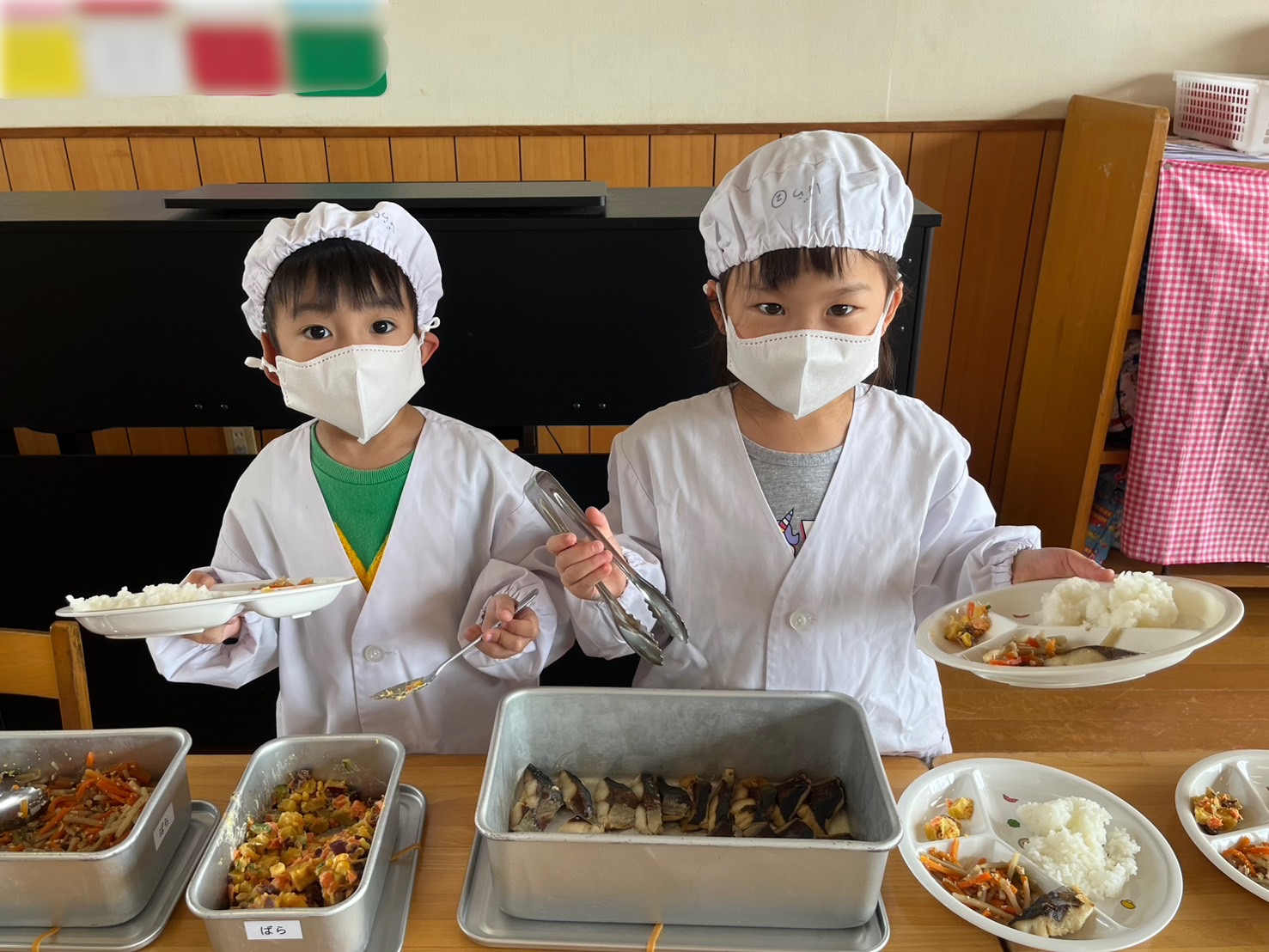 今日から年長組で給食当番がスタートしました!白衣と帽子を被って、慎重にお皿におかずを配ったり配膳をしたりと初日からやる気いっぱいのお友だちです!給食当番は1週間交代で行います!楽しみですね♪