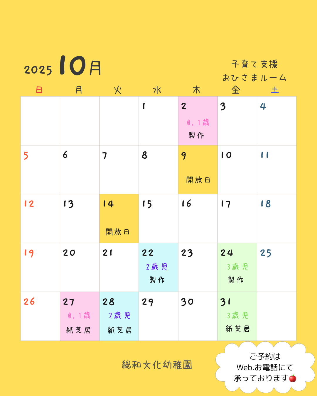 総和文化幼稚園で令和7年6月より子育て支援「おひさまルーム」がスタートします。