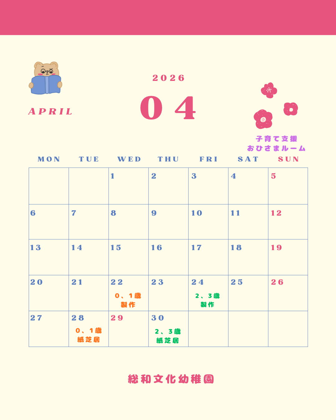 令和8年度 おひさまルーム4月のご案内